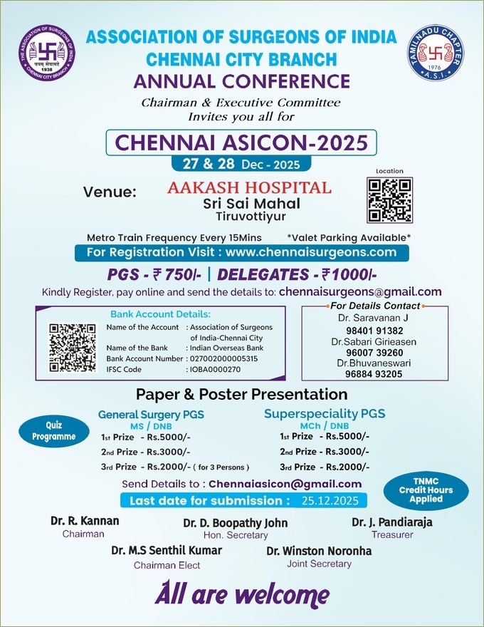 © 2023-2026 Association of Surgeons of India - Chennai City Chapter. All Rights Reserved.                                                                            Web Solutions by  i - Net Concepts